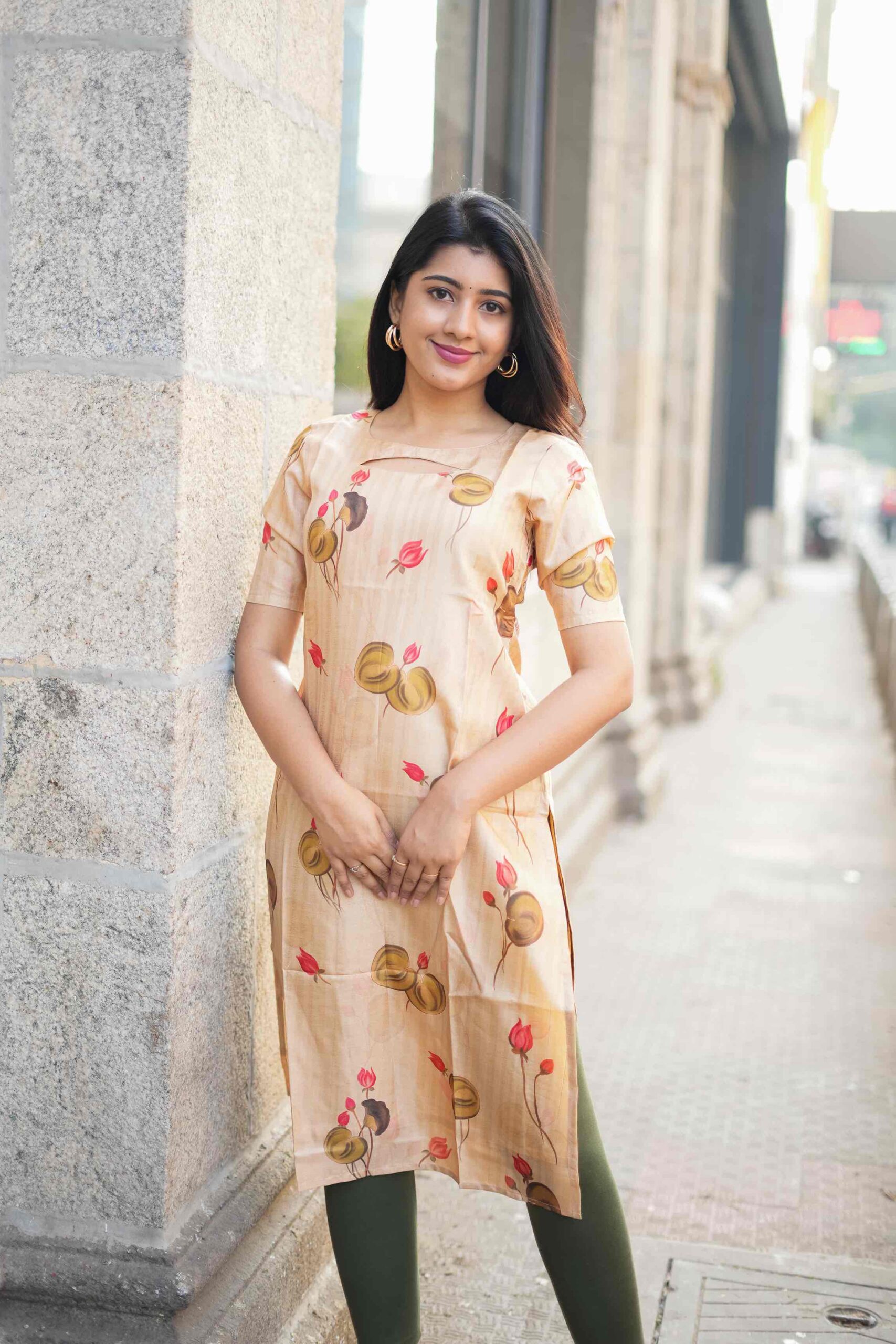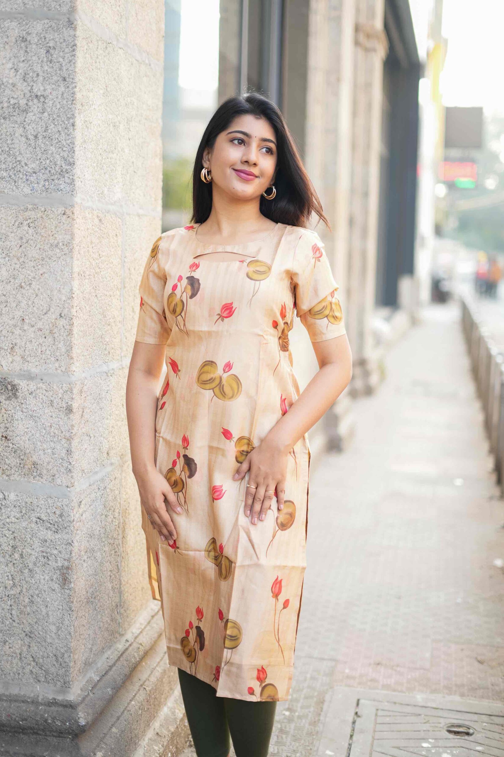 Elevate your style with this exquisite beige top, adorned with vibrant red and yellow floral patterns that bring a touch of nature’s beauty to your wardrobe. The top features a stylish cut-out neckline, adding a modern twist to the classic floral design. Short sleeves make it perfect for warm weather, while the soft and breathable fabric ensures all-day comfort. Whether you’re dressing up for a casual outing or a special occasion, this top effortlessly combines elegance and comfort.